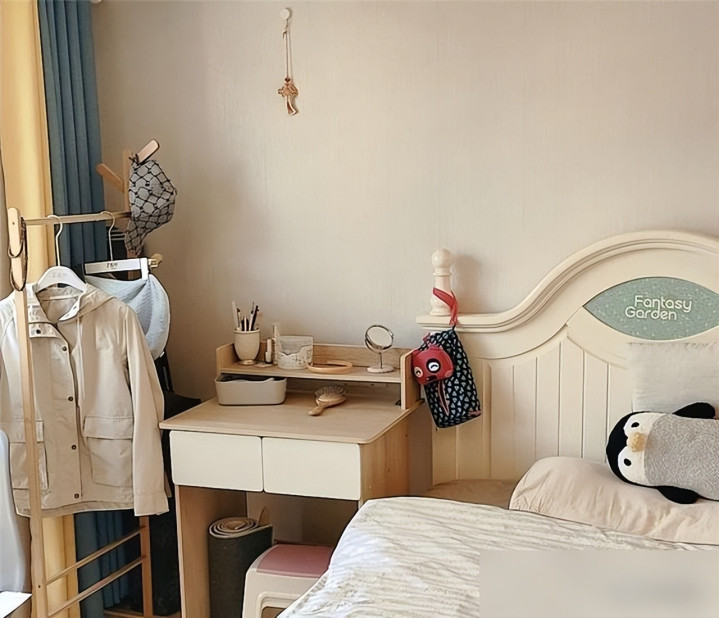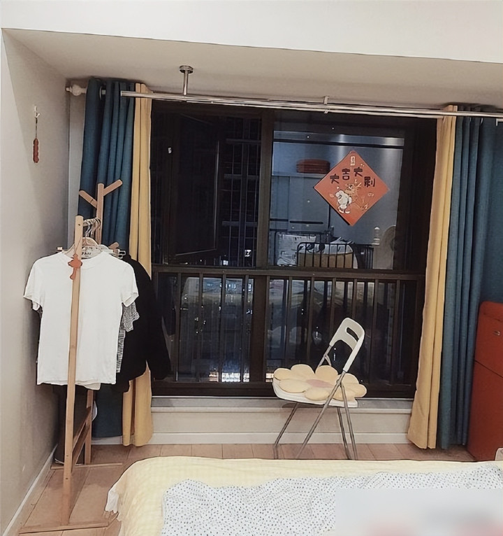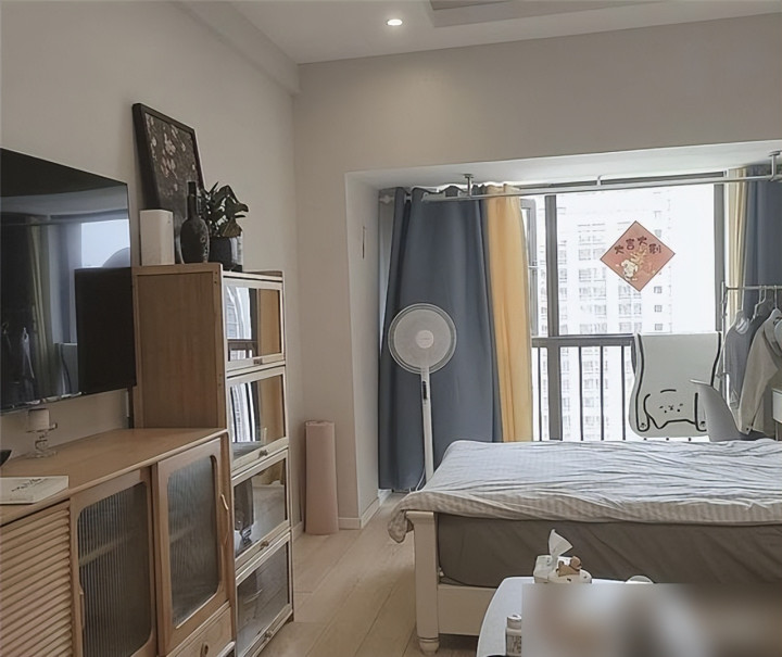 卧室更绝:双人床靠阳台摆,落地窗的采光把被子晒得暖乎乎的,床头用梳妆台代替床头柜——既能放护肤品,又能当书桌写随笔,一物两用的“多面手”家具,才是小房子的“刚需”。你看那些大卧室里的床头柜,摆着没用的摆件,反而占地方;小房子里的每样东西都“有任务”,没有冗余,这不就是“极简但不简单”?