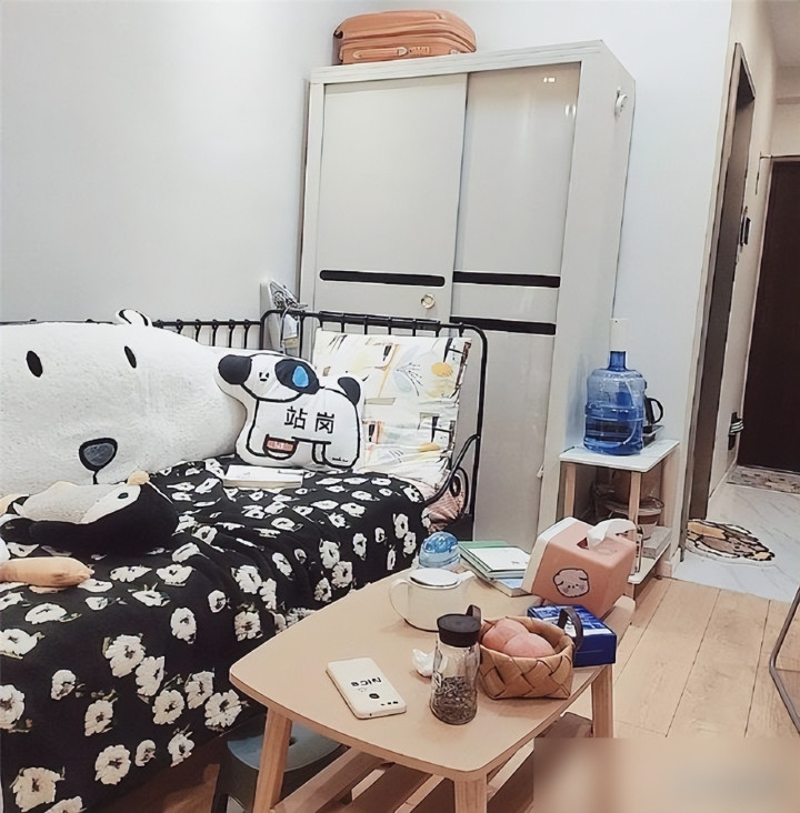 很多人说“小房子没必要留客厅”,可我觉得,客厅是“生活的锚点”——下班回家窝在铁艺沙发上追《甄嬛传》,周末煮杯芋圆奶茶看电影,哪怕就坐十分钟,也是“给日子留了个‘喘口气’的地方”。再说那沙发还是张床,闺蜜来住的时候,铺个被子就能睡,这不就是“小房子的弹性”?